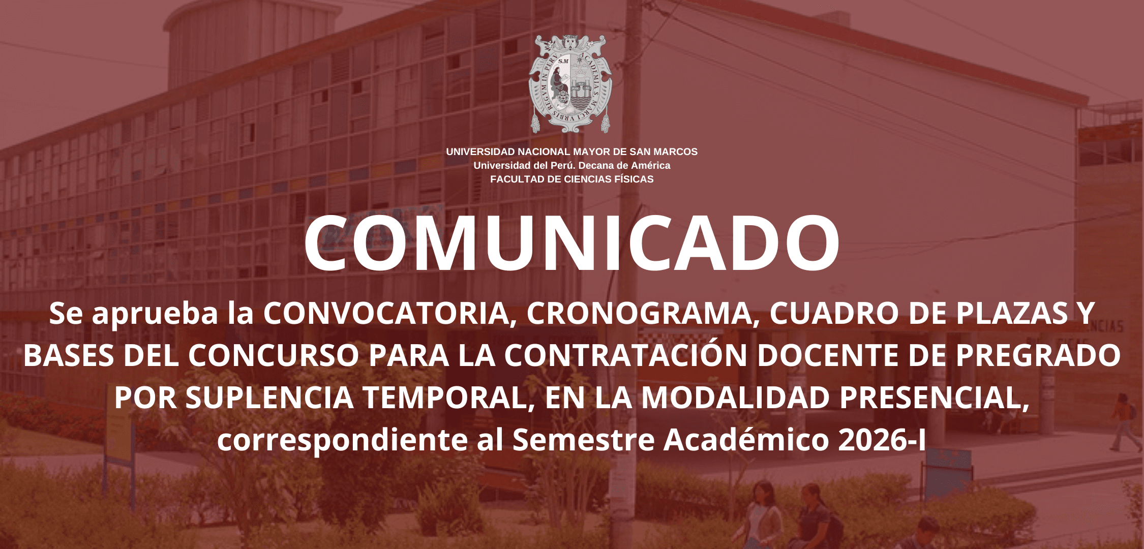 Se aprueba la CONVOCATORIA, CRONOGRAMA, CUADRO DE PLAZAS Y BASES DEL CONCURSO PARA LA CONTRATACIÓN DOCENTE DE PREGRADO POR SUPLENCIA TEMPORAL, EN LA MODALIDAD PRESENCIAL, correspondiente al Semestre Académico 2026-I .